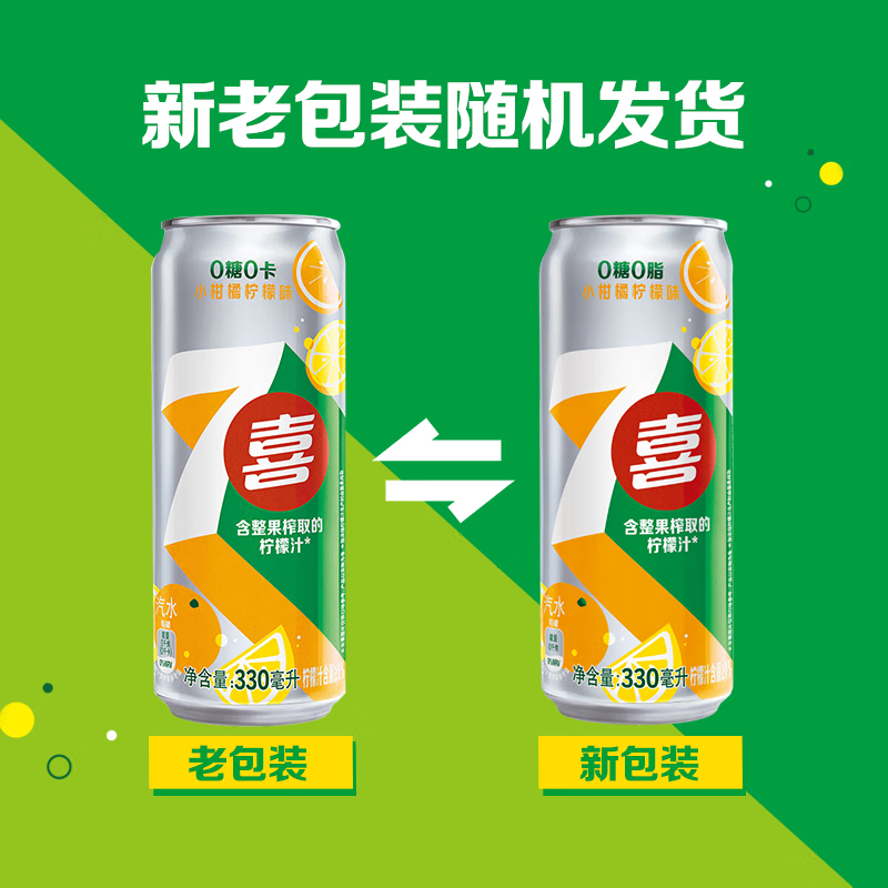 百事可乐七喜7UP 无糖 小柑橘柠檬味 碳酸饮料汽水可乐 330ml*12听 整箱装