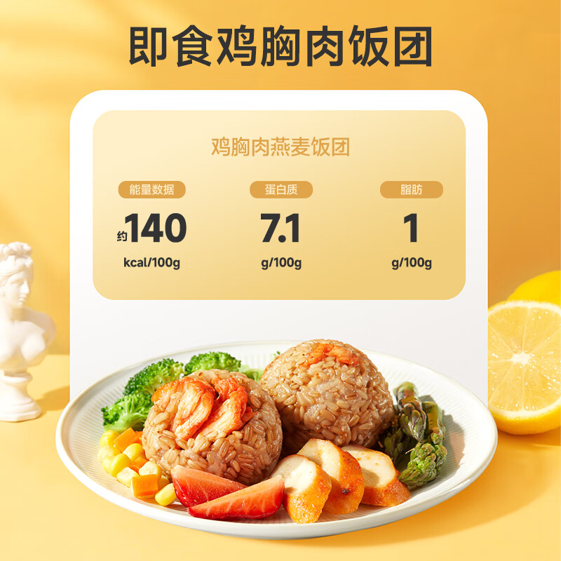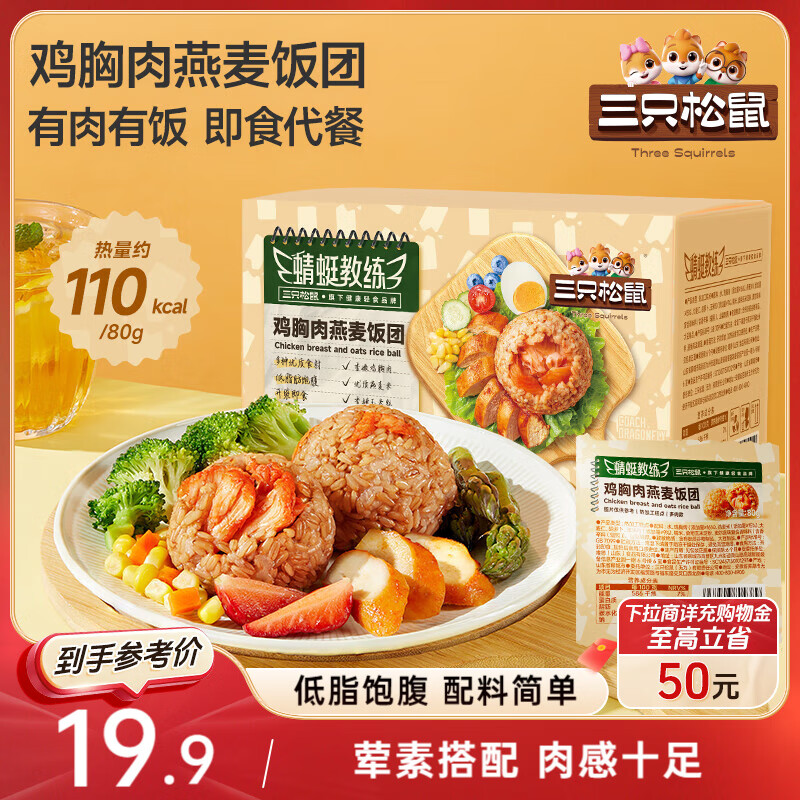 三只松鼠鸡胸肉燕麦饭团80g16袋 即食早餐健身代餐速食低脂饱腹1280g