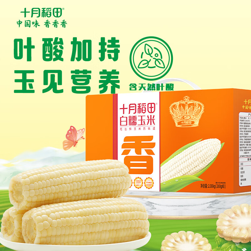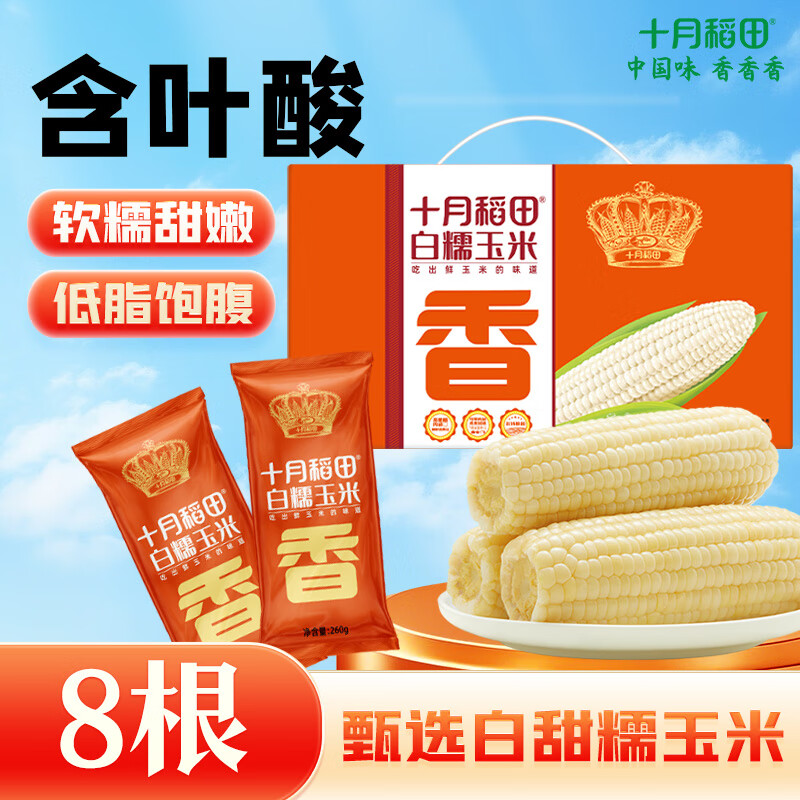 十月稻田 白甜糯玉米 8根 4.16斤 东北鲜黏玉米棒 减脂早餐苞米 杂粮礼盒