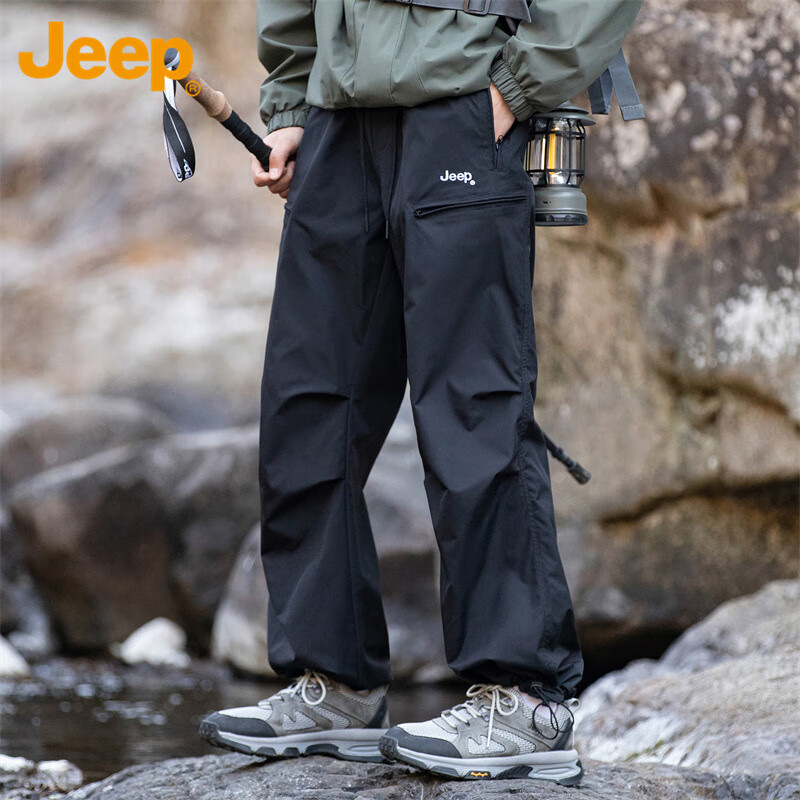 吉普(JEEP)工装裤男士春秋季休闲裤子伞兵裤运动户外长裤男裤黑色 XL