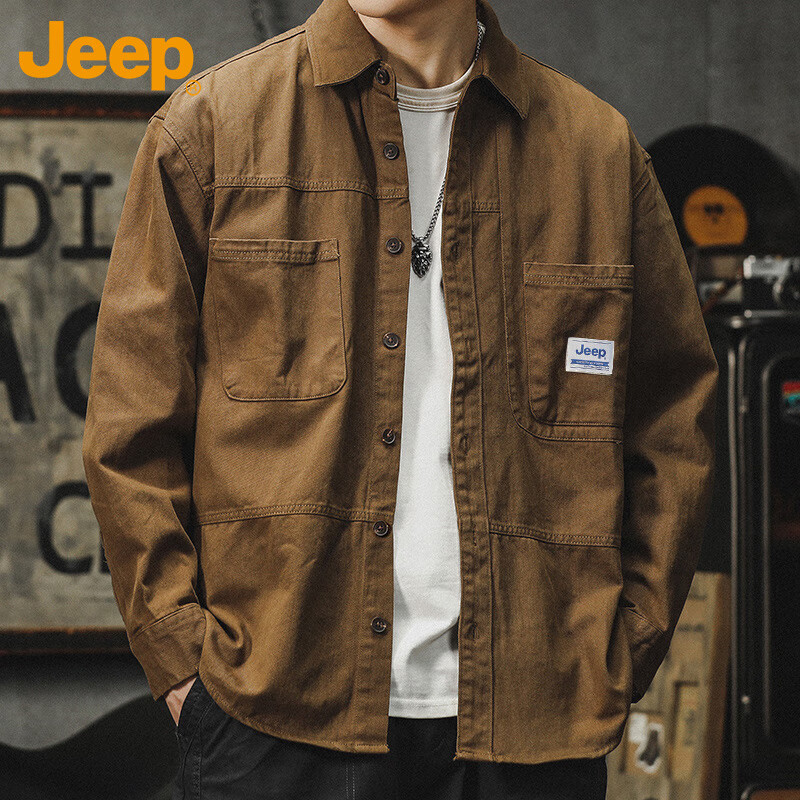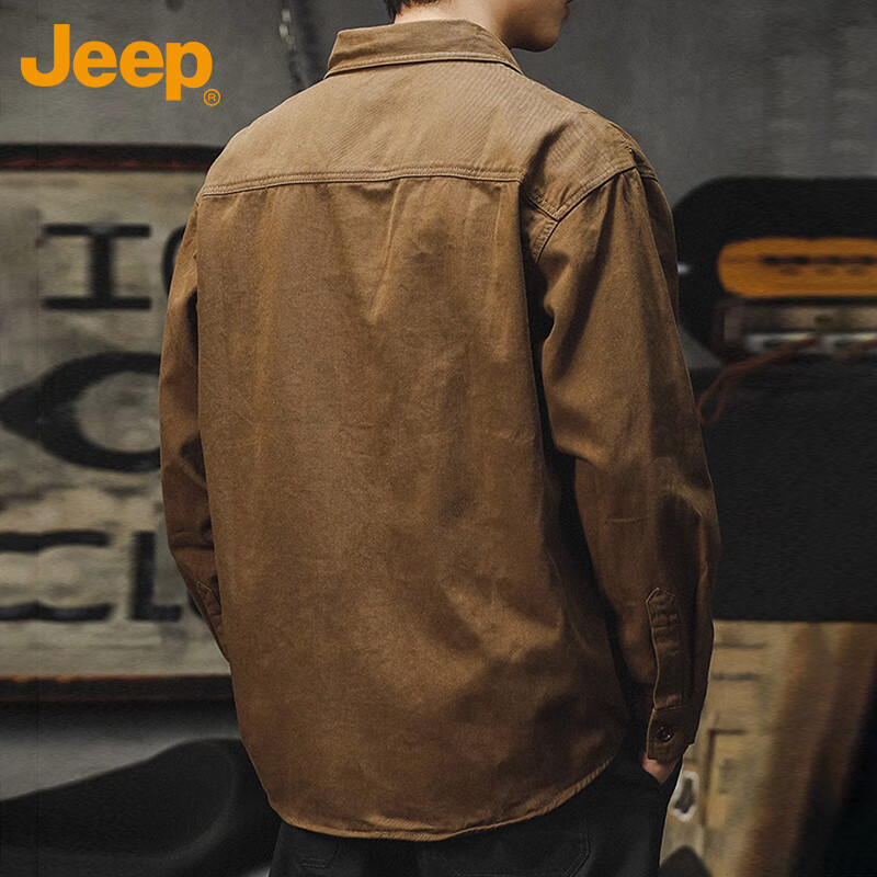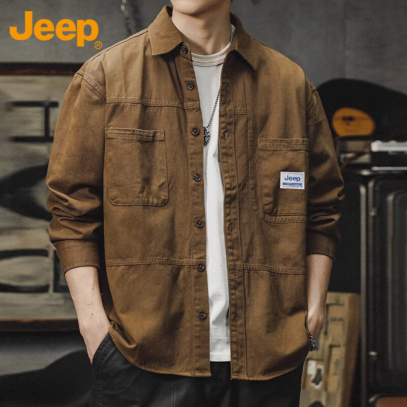 吉普(JEEP)长袖衬衫男春秋季工装休闲外套男士宽松衬衣服男装 深卡其 XL