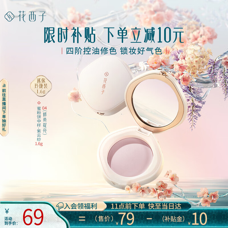 花西子【迷你玲珑装】好气色蜜粉饼-04紫云纱-1.6g便携补妆修黄