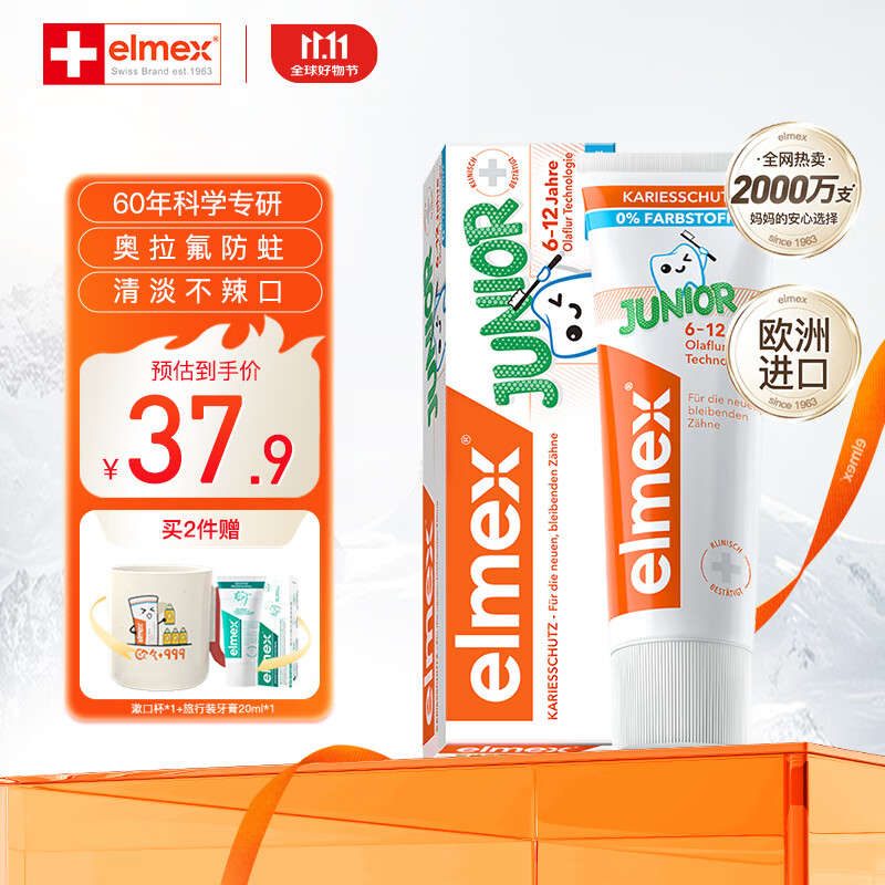 ELMEX艾美适儿童0-3-6岁欧洲进口牙膏含氟防蛀不辣口易洁净低泡牙膏 6-12岁少儿牙膏50ml