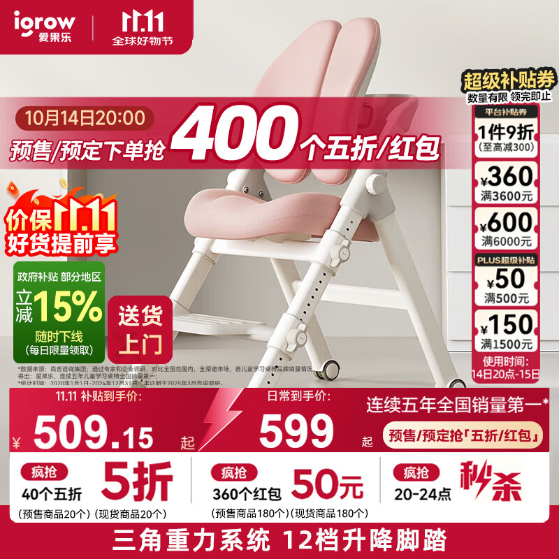 爱果乐(IGROW)儿童学习椅学生座椅子矫姿写字椅升降久坐舒服儿童学习餐桌椅