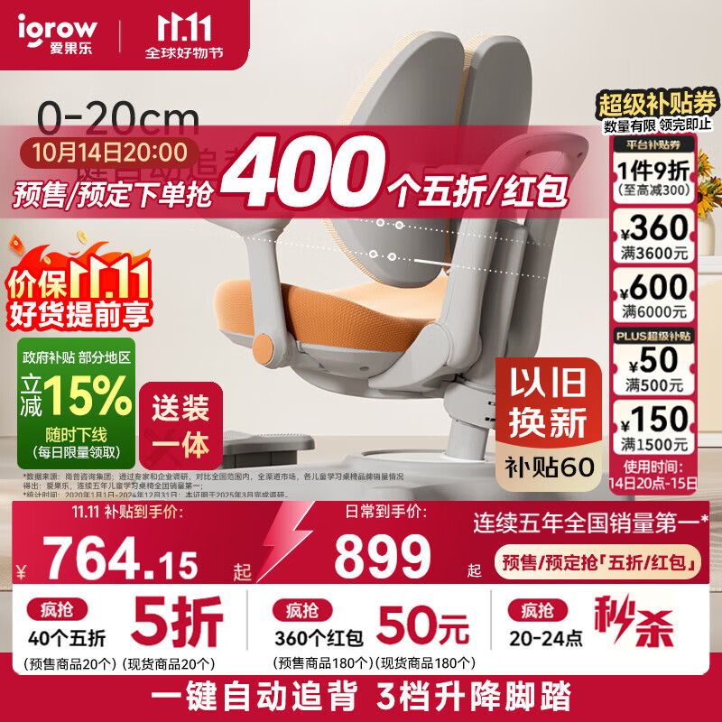 爱果乐(IGROW)熊抱椅2.0儿童学习椅学生座椅子矫姿写字椅升降久坐舒服餐桌椅