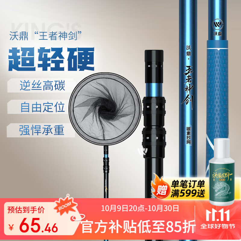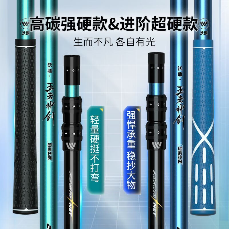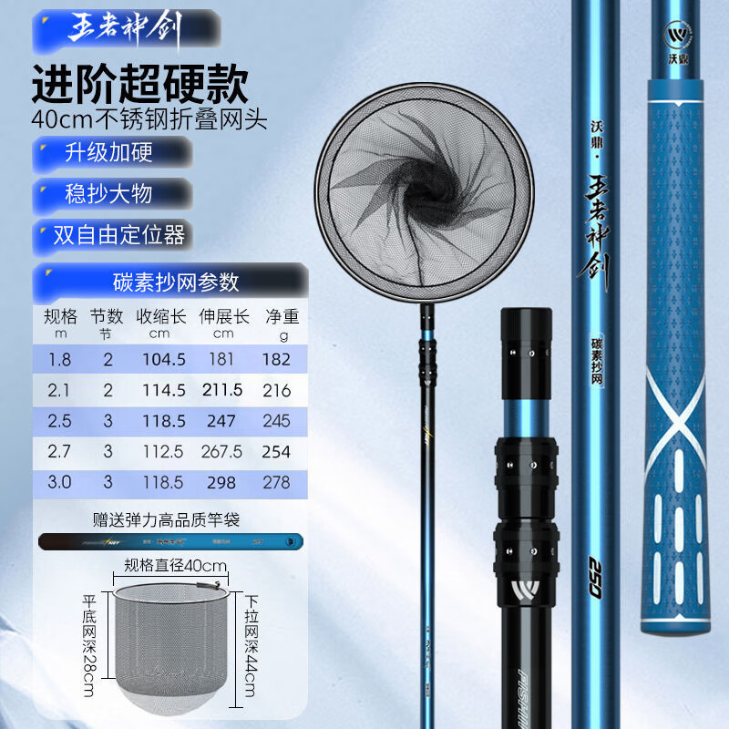 沃鼎王者神剑碳素抄网超轻超硬伸缩捞鱼网兜 2.5m【带不锈钢网头】