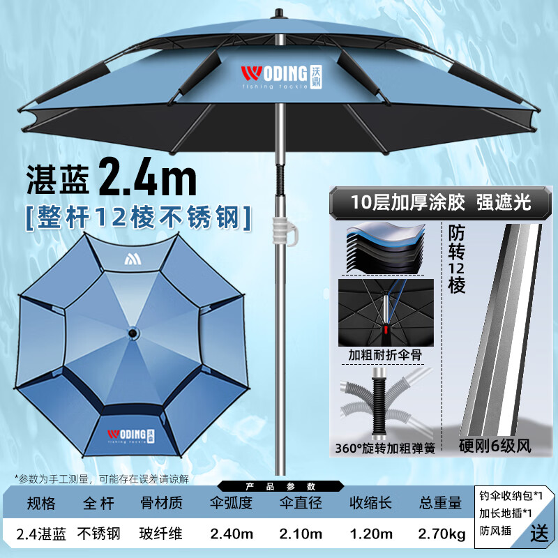 沃鼎钓鱼伞2025新款防晒不锈钢大钓伞加固加厚户外露营遮阳雨伞沙滩伞