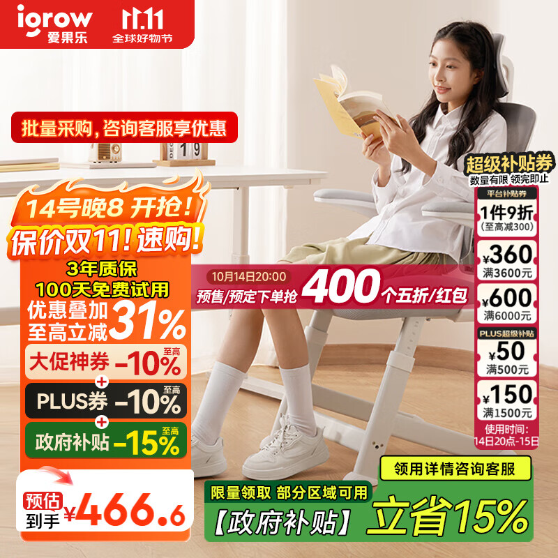爱果乐(IGROW)学习椅青少年中学生人体工学椅写字升降办公书桌电脑椅