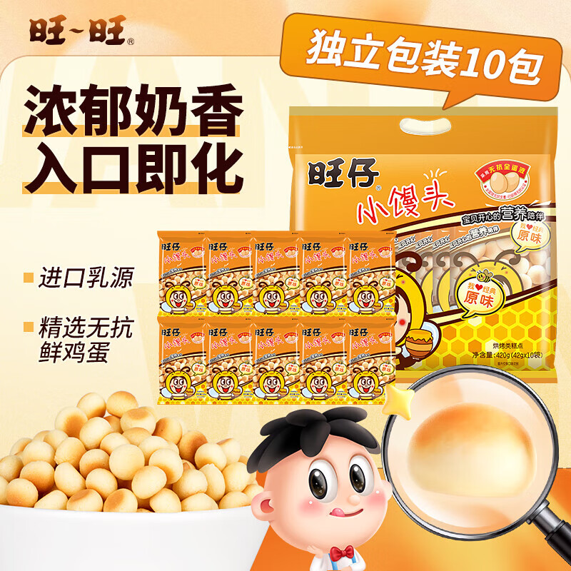 旺旺 旺仔小馒头 经典原味 420g 儿童饼干 宝宝零食 饼干糕点