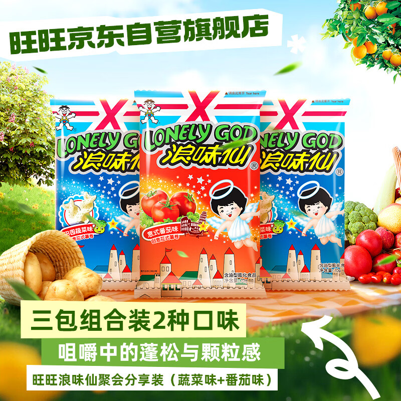 旺旺 浪味仙 田园蔬菜味*2+番茄味*1 70g*3 优惠装 零食膨化休闲食品