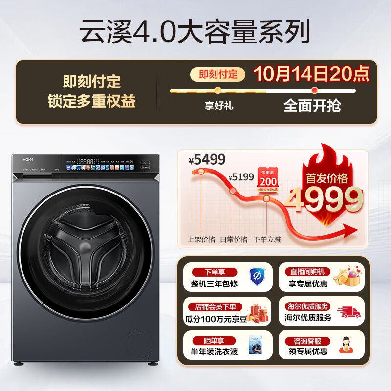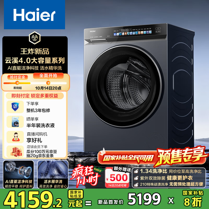 海尔(Haier)云溪4.0滚筒洗衣机全自动12公斤 超薄家用家电国家补贴 京东自营直驱583 一级能效以旧换新 内衣洗