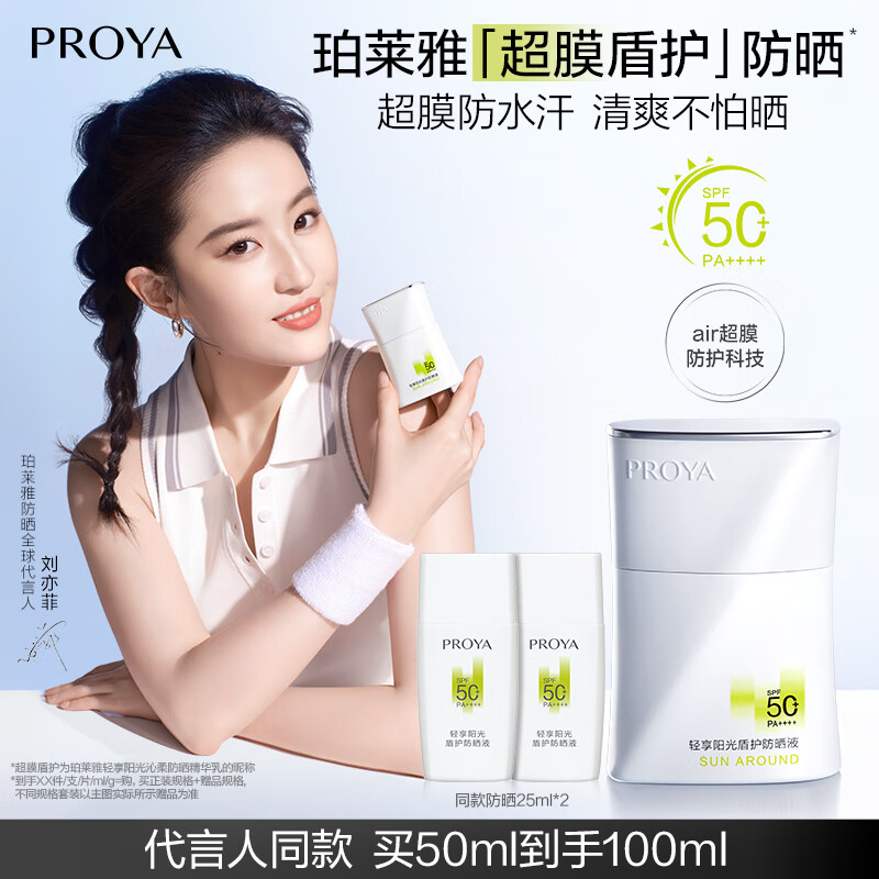 珀莱雅(PROYA)【刘亦菲同款】盾护防晒50ml 防水防汗 防晒霜军训专用 高倍防晒