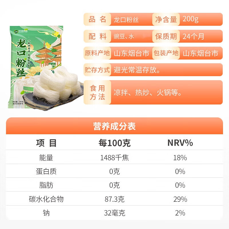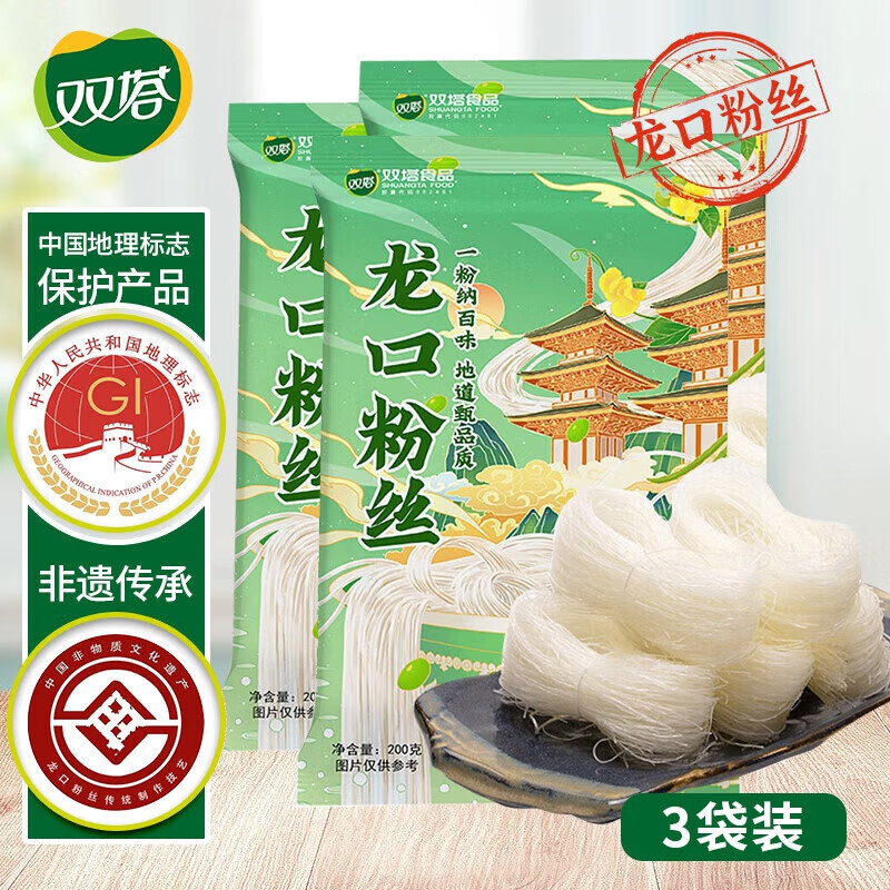 双塔龙口粉丝200g*3袋凉拌粉条水晶粉鸭血粉丝南北干货烧烤火锅食材