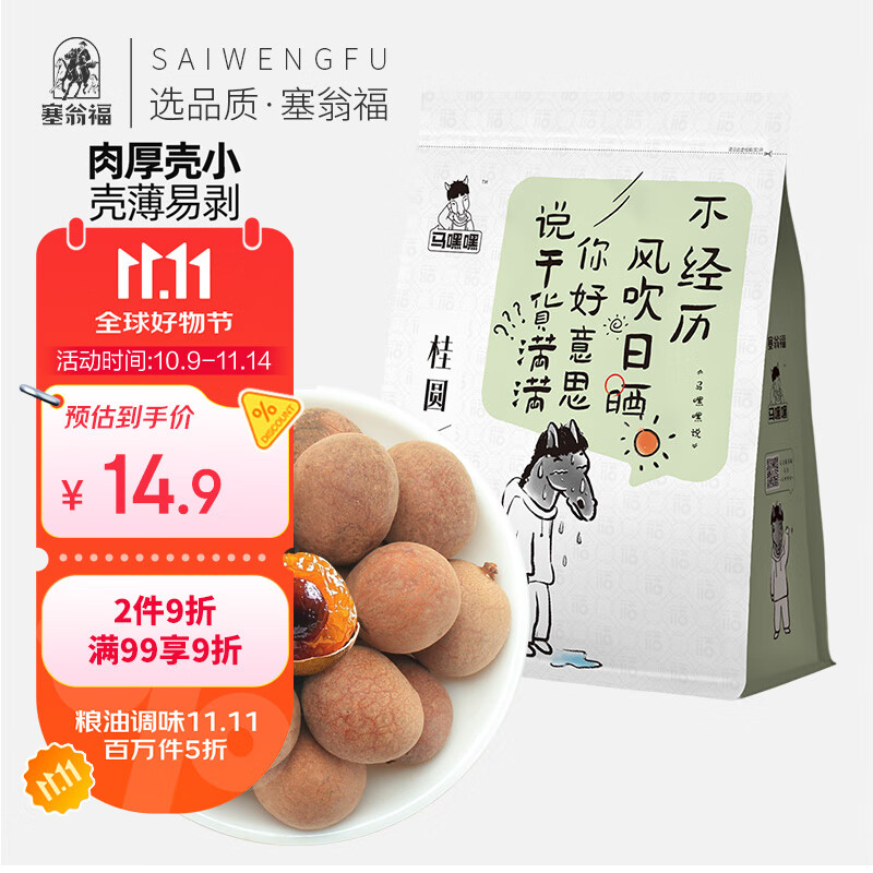 塞翁福 桂圆500g 带壳桂圆干 肉厚核小 大果龙眼干 福建桂圆 22-25mm
