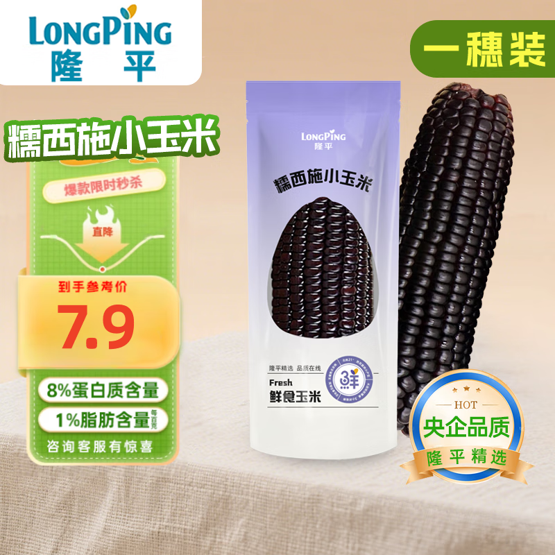 隆平 西双版纳糯西施小黑糯玉米1棒单果110g+郑州发货源头直发包邮