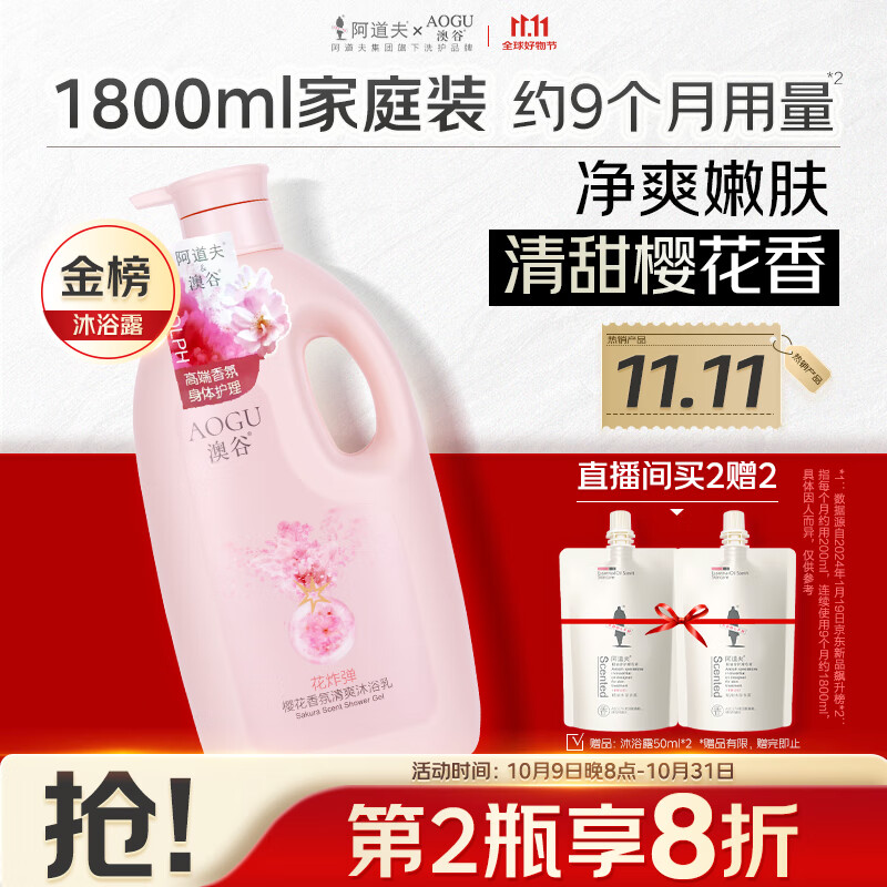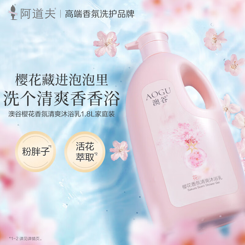 阿道夫澳谷樱花香氛清爽沐浴露家庭装1.8L不假滑易冲洗香味持久男女通用