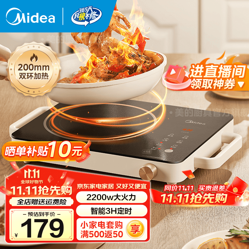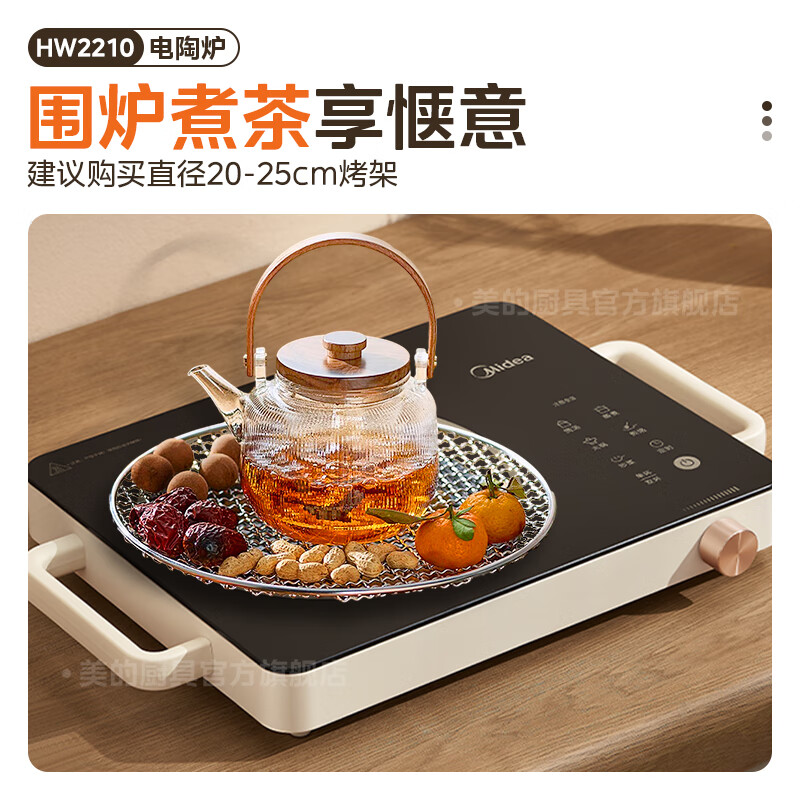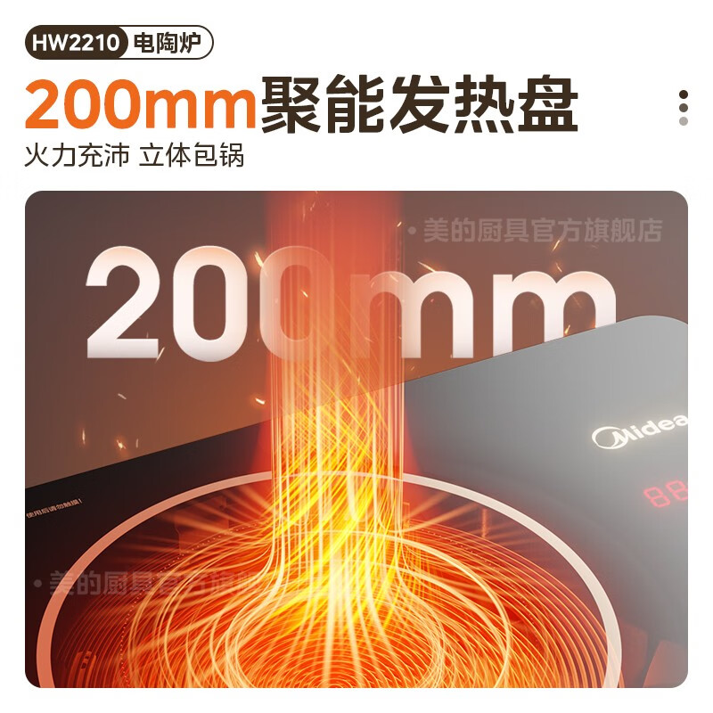 美的(Midea)家用电陶炉炒菜电陶炉家用煮茶炉旋控2200W大功率电磁炉/电陶炉智能定时双环控火防水围炉煮茶器 【200mm双环加热】自由调节火力