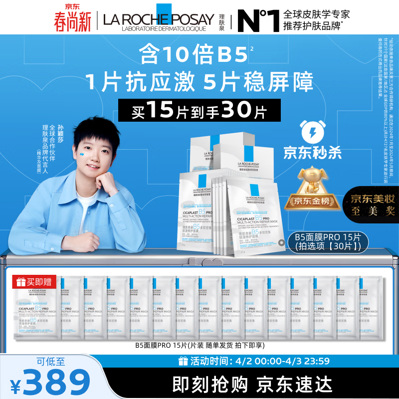 理肤泉【孙颖莎推荐】B5面膜PRO到手30片套装补水保湿修护护肤品礼物