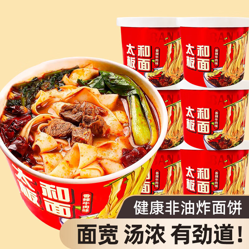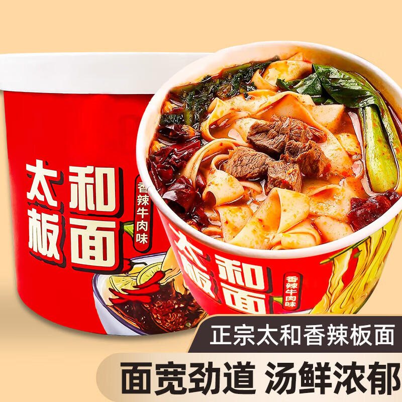 牛肉板面安徽太和板面桶装速食免煮冲泡面方便面夜宵宽面93g*1桶 太和板面*1