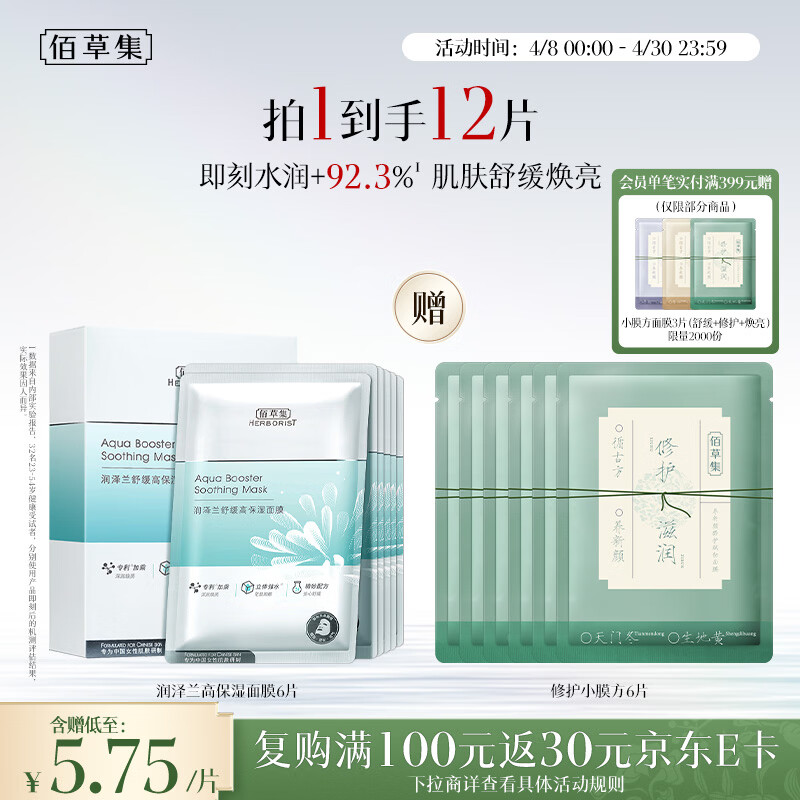 佰草集润泽兰舒缓高保湿面膜6片舒缓保湿补水淡化细纹礼物男女