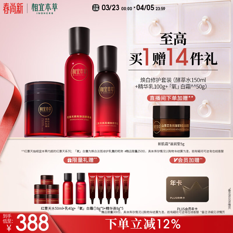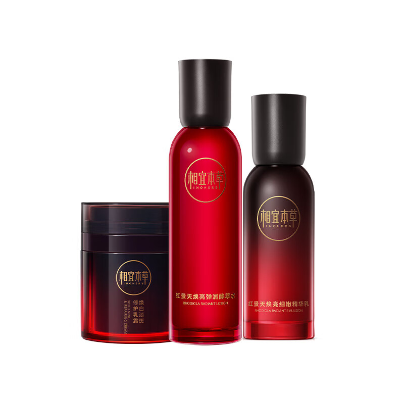 相宜本草红景天焕白淡斑水乳氧白霜护肤套装送女友