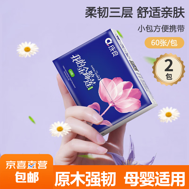 【店铺爆款】抽纸便携装抽取式面巾纸湿水不易破迷你小方巾60张 3层 20片*2包