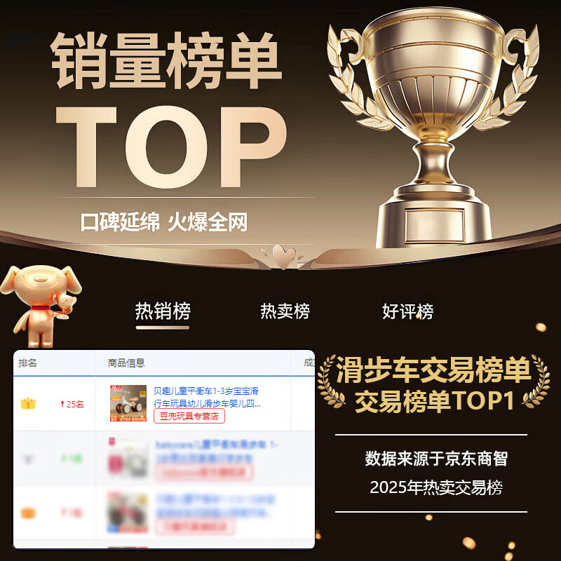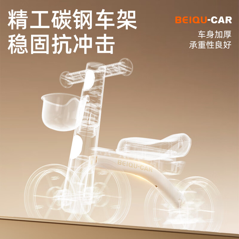 贝趣儿童平衡车1-3岁宝宝滑行车玩具幼儿滑步车婴儿四轮无脚踏溜溜车 咖 【防前倾+灯光音乐+静音轮】 一岁防侧翻滑滑车周岁生日礼物