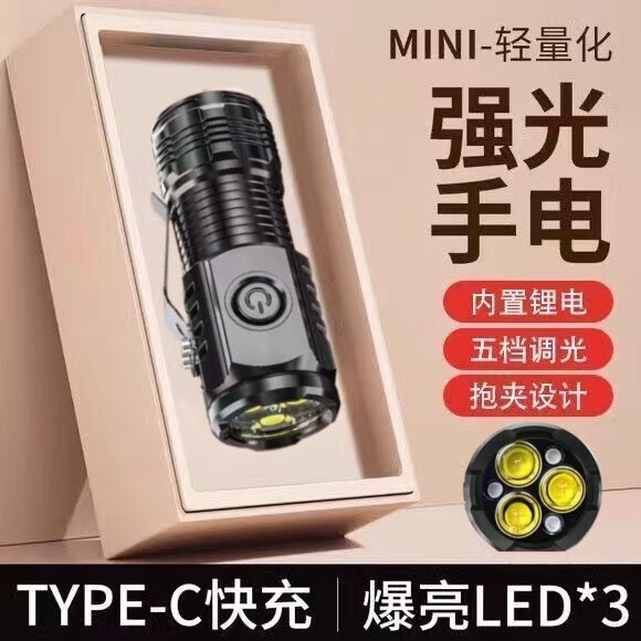 强光手电筒户外照明灯可充电远射户外露营应急防水长续航LED灯 中亮399L【便携远射 带笔夹】
