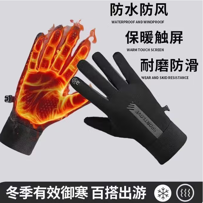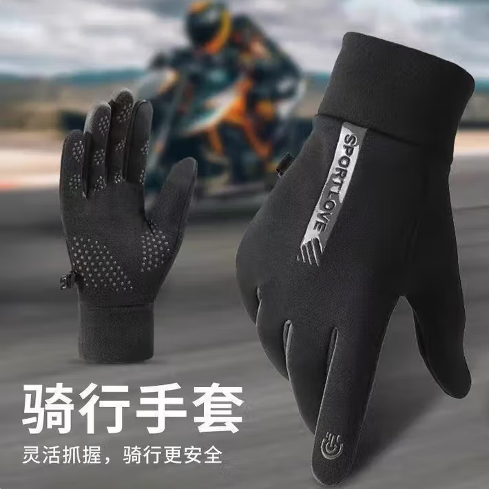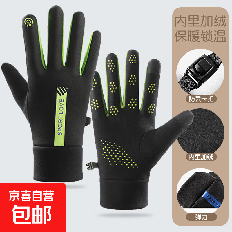 【京东物流】手套男士冬季加绒骑行电动车防滑触屏开车保暖手套女 【掌心防滑 可触屏】男士绿色 均码 1双 掌围女17-21男18-23cm