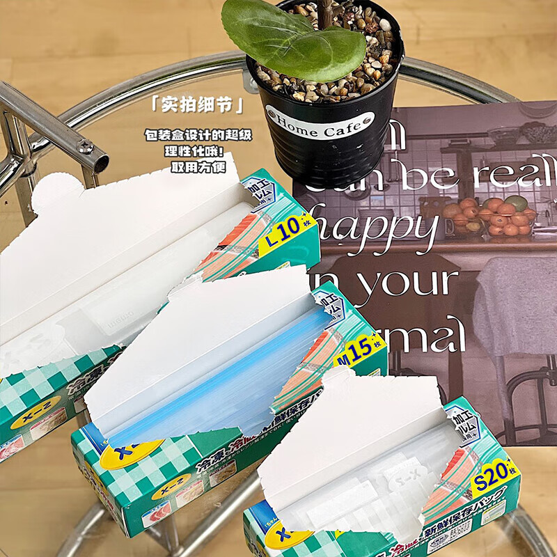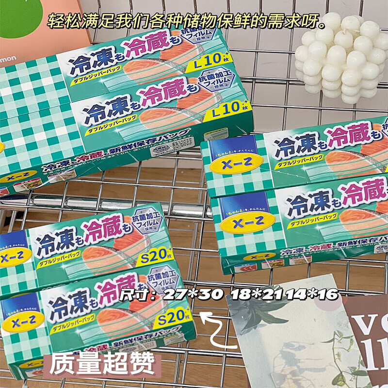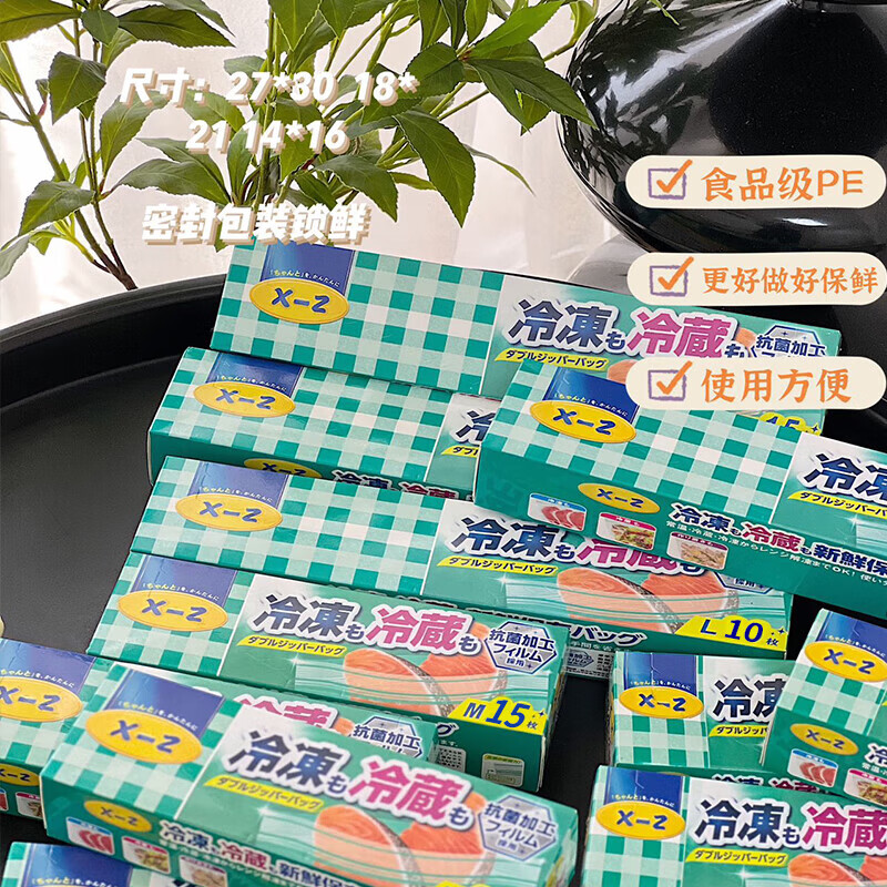 抗菌保鲜袋收纳水果冷冻家用食品级密封袋加厚PE双层封口 食品级密封袋大号2盒20只