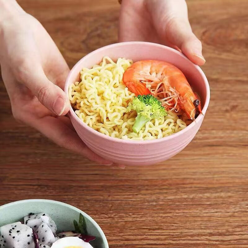 小麦秸秆防摔碗家用汤碗米饭碗泡面碗塑料碗学生儿童餐具套装 大号防摔碗【1个装】颜色随机