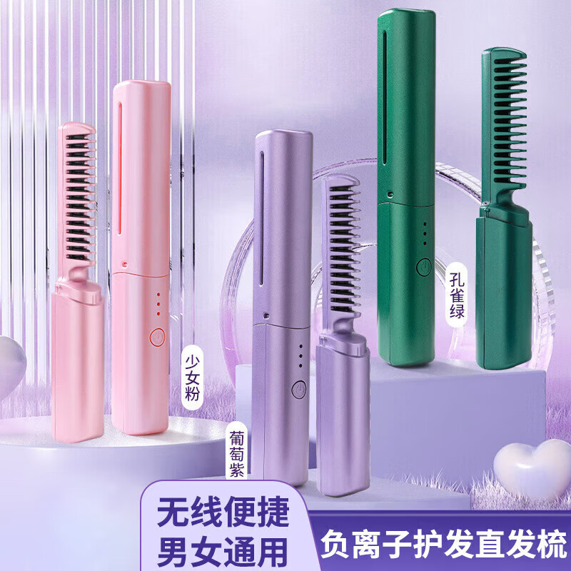 【无线】便携无线直发梳负离子便携蓬松神器温控直卷两用男女通用内扣高颅顶不伤发外出便携送礼 粉色 30mm【旗舰款】蓬松高颅顶+防烫设计