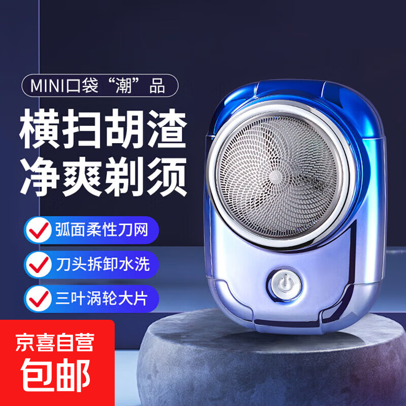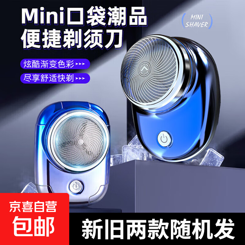 剃须刀 电动剃须刀 MINI口袋潮品 刀头可拆卸水洗 弧面柔性刀网送男友父亲节礼物/节日礼物 渐变蓝(新老混发)