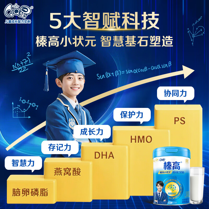 伊利QQ星榛高小状元 CBP/DHA/燕窝酸儿童成长益智奶粉4段6岁+ 20g*4条