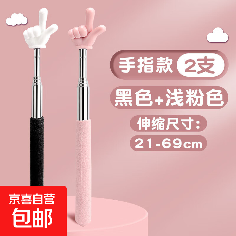 可伸缩教鞭教师专用儿童阅读指读棒小手指棒教具家用读书看书学习触屏幼儿园点读教棍教杆指示早教黑板钢琴 手指款2支 黑色+粉色