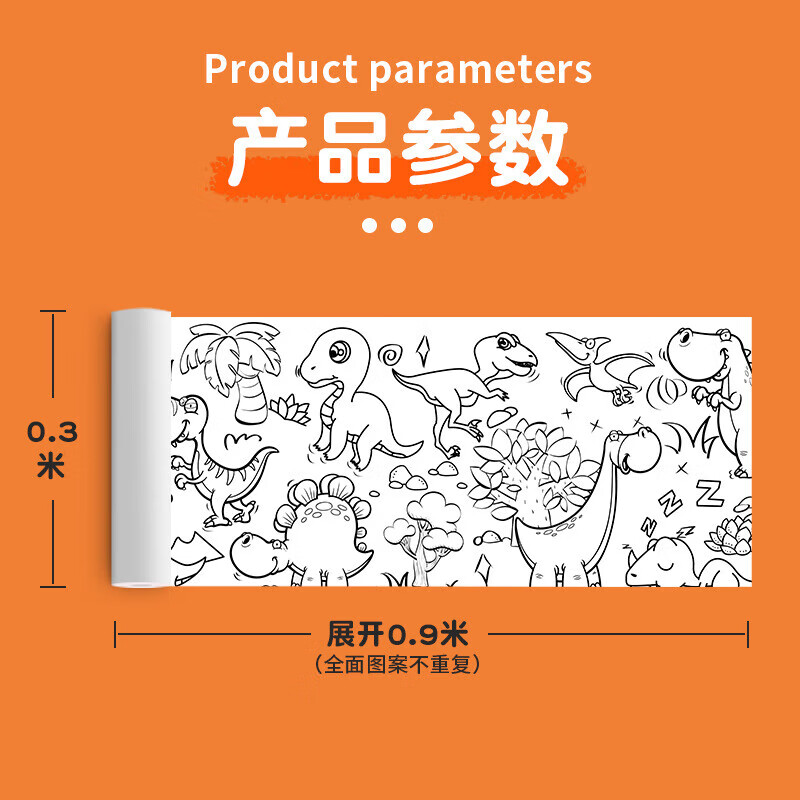 涂鸦大画纸儿童填色绘画纸画卷幼儿园宝宝涂色画布画画本画册蜡笔 (生活用品+水果蔬菜+交通用品+美味食物) 300mm*900mm
