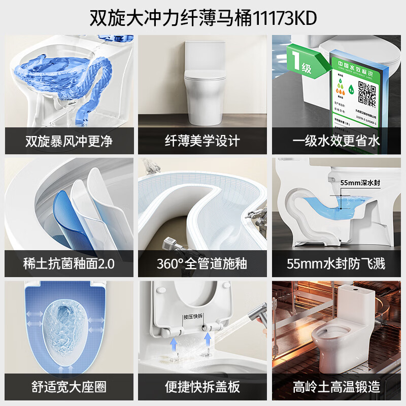 九牧(JOMOO)11173-2-1/31KD-3大力神家用马桶虹吸抗菌节水洁具305坑距