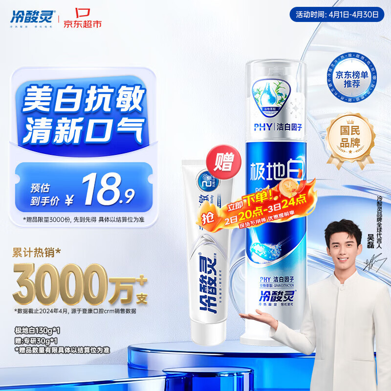 冷酸灵极地白泵式牙膏抗敏感美白牙齿海洋薄荷香 130g【吴磊推荐】