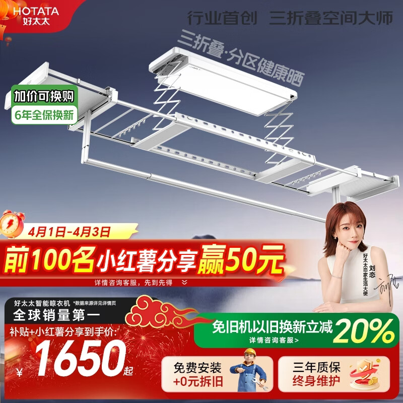 好太太电动晾衣架隐形升降阳台全隐藏式智能晾衣机Q30 三折叠空间大师