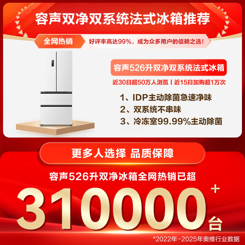 容声双净526L法式多门冰箱双系统双循环大容量一级能效风冷无霜变频以旧换新白BCD-526WD1MPA国家补贴