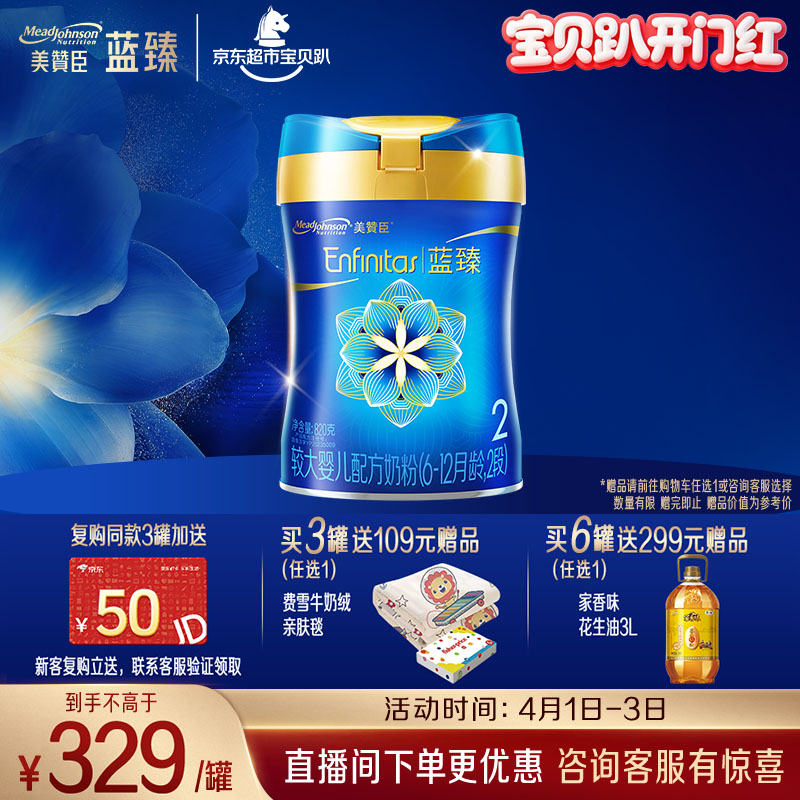 美赞臣蓝臻较大婴儿配方奶粉2段(6-12月)820g*1罐 实证乳铁蛋白