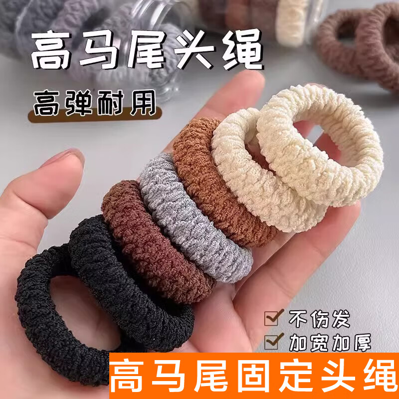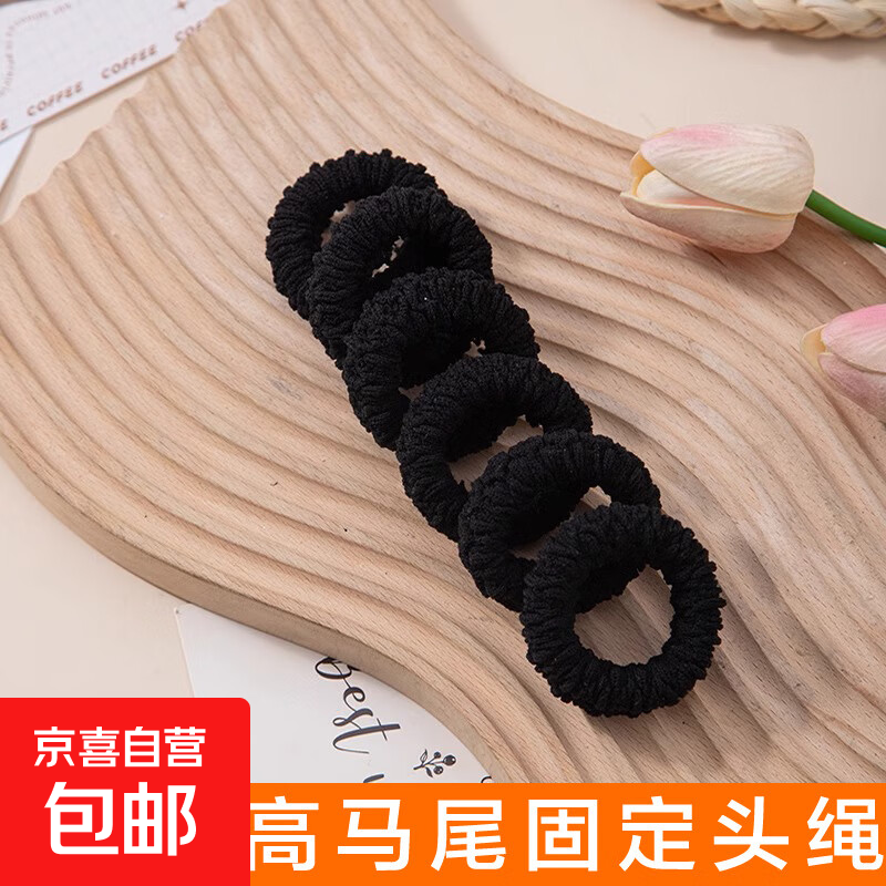 发圈高弹力耐用发绳高马尾固定头绳皮套发饰加厚加宽扎头发橡皮筋 高马尾发绳-黑色-6根-1包