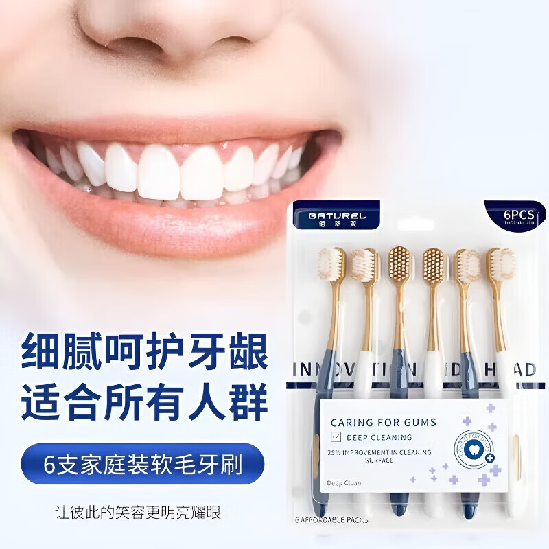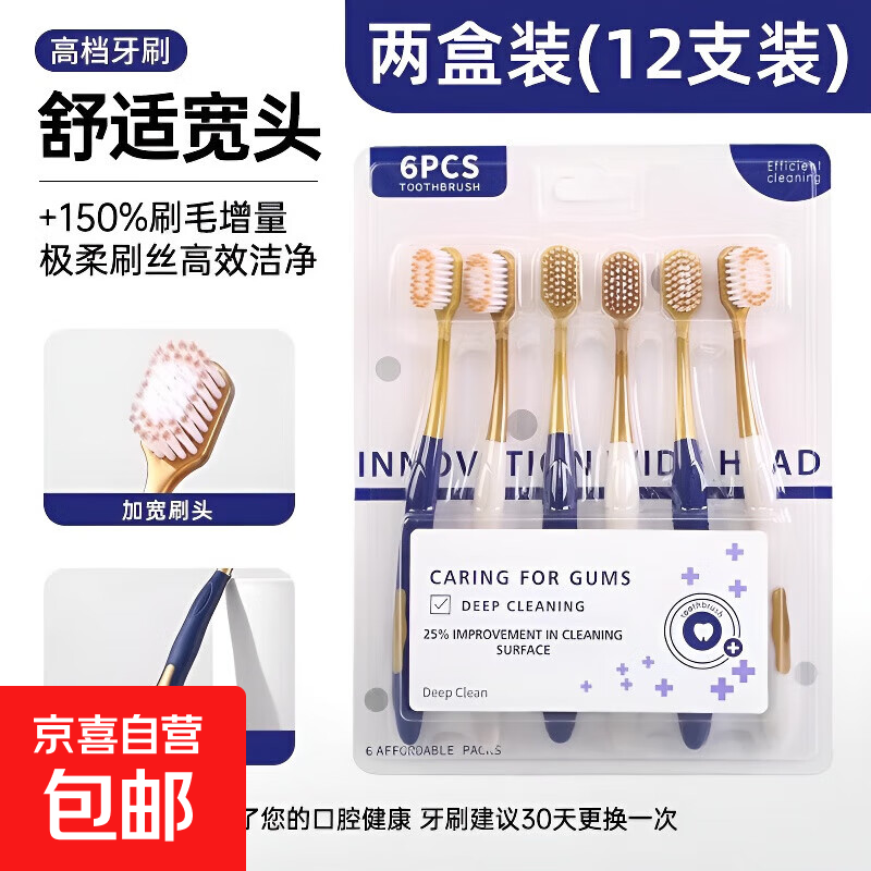 平替宽头牙刷软毛密丝柔软高密家用深层清洁口腔母婴适用 6支装【75克】两板12支
