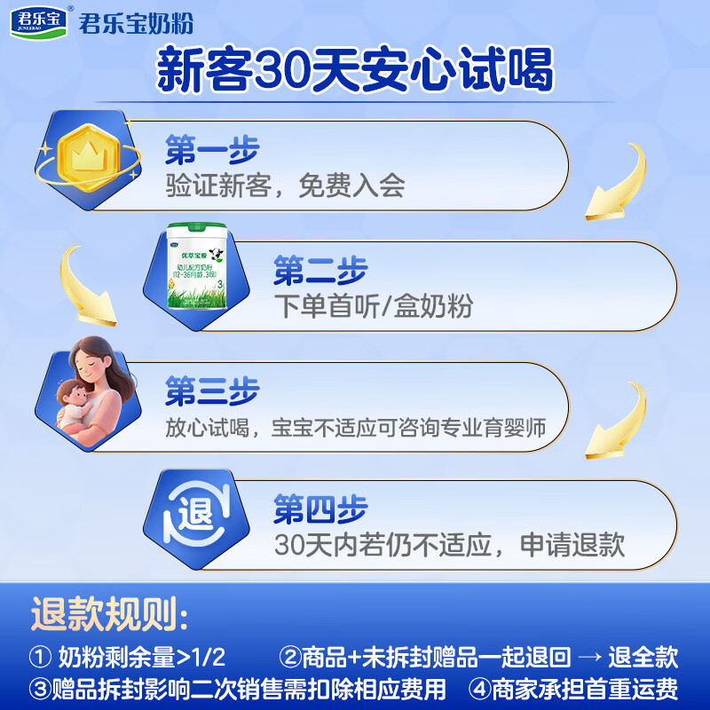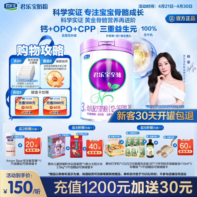 君乐宝至臻3段幼儿配方奶粉(12-36月龄)800g*1罐专注宝宝骨骼成长