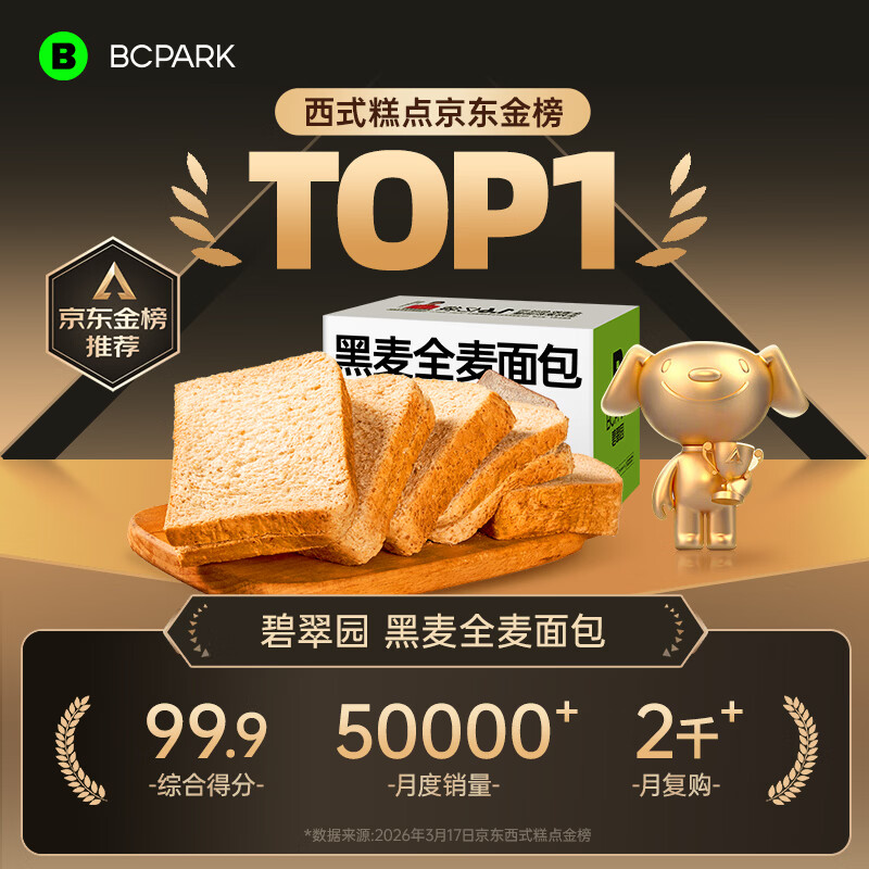 碧翠园全麦面包0脂0蔗糖黑麦吐司1000g粗粮面包早餐健身代餐食品零食