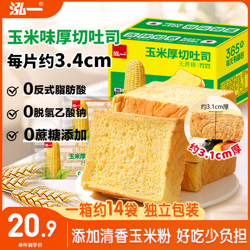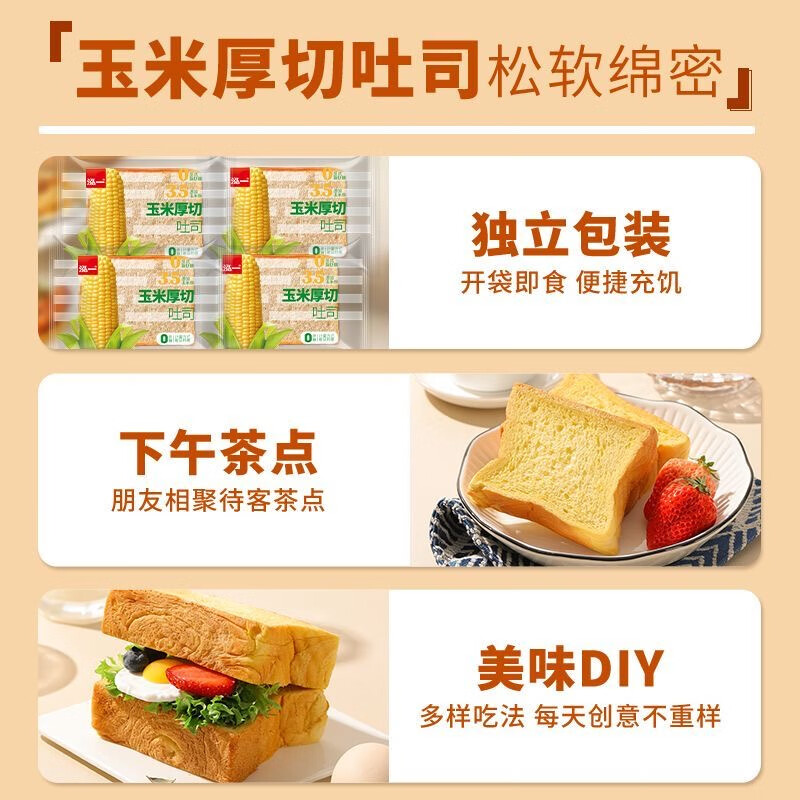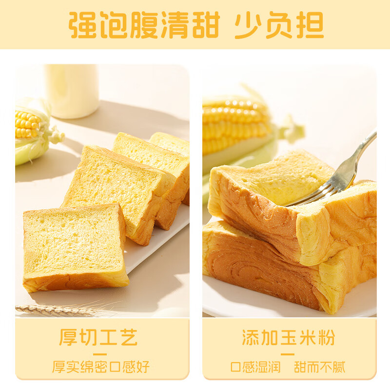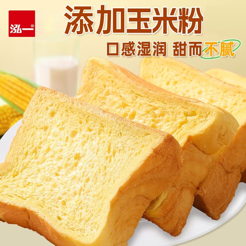 泓一玉米厚切吐司2斤 早餐面包代餐点心粗粮饱腹下午茶无蔗糖食品