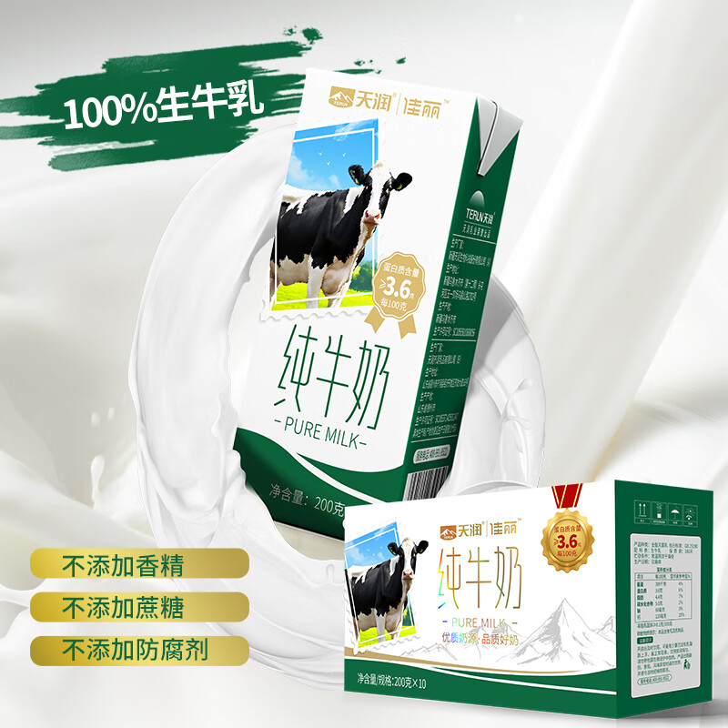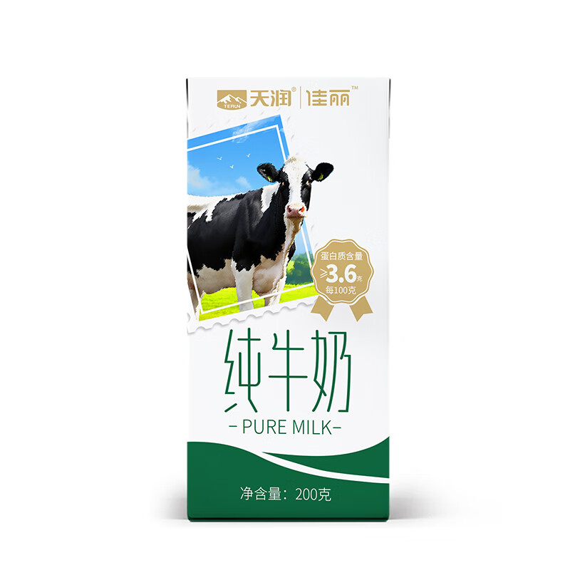 佳丽全脂纯牛奶整箱装3.6g乳蛋白200g*10盒 天润出品 定期购