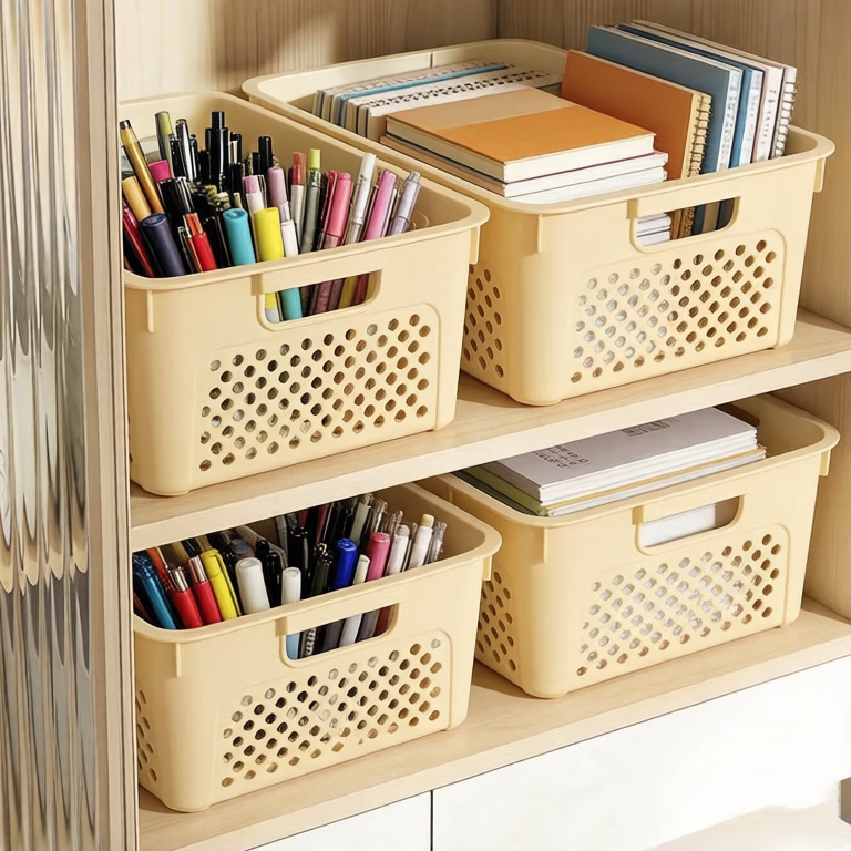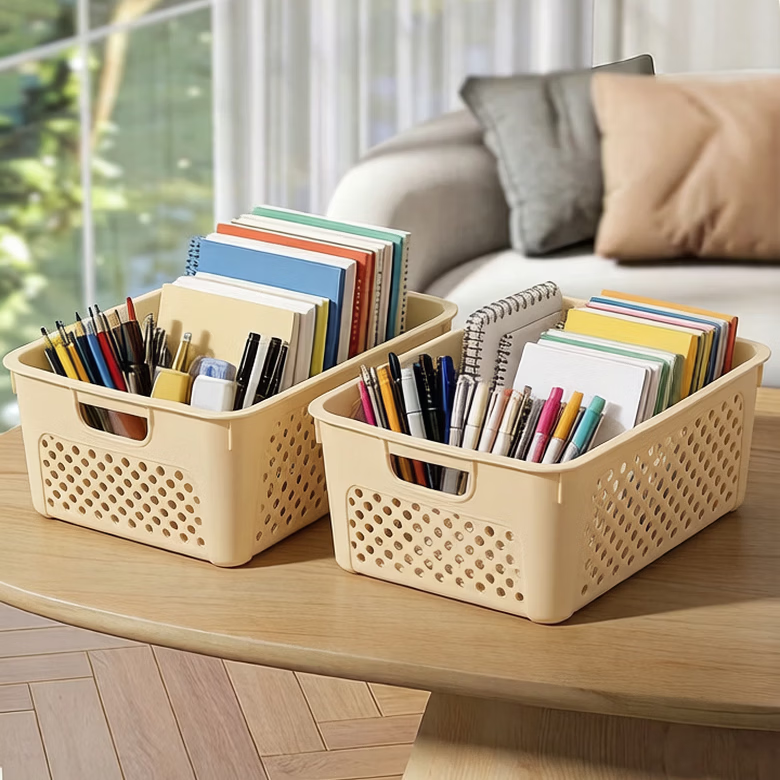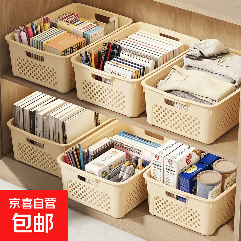桌面文件筐整理盒办公室书桌写字台大容量桌面文具收纳盒书桌文具收纳管理用品 奶油白大号