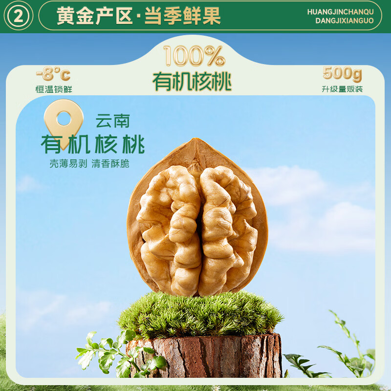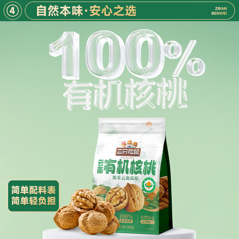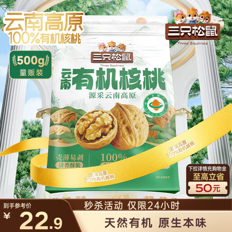 三只松鼠云南有机核桃500g/袋 坚果炒货干果仁特产休闲零食送礼