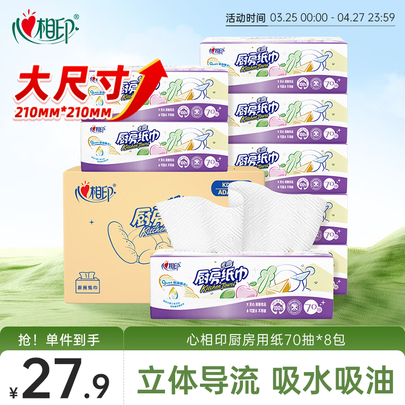 心相印厨房用纸70抽*8包 吸油吸水纸巾 食品接触级